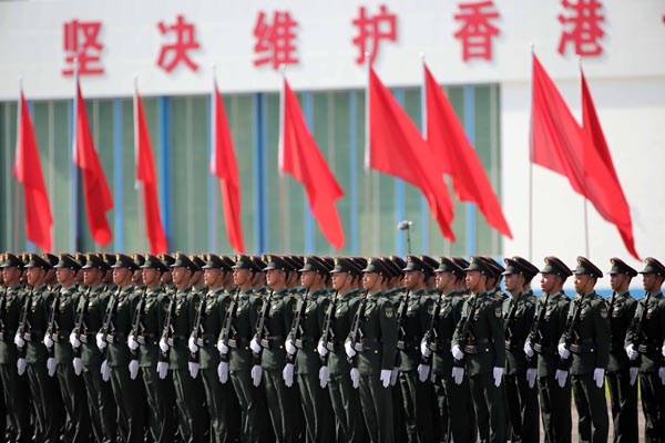 習近平強調,駐香港部隊是國家主權的重要體現,是維護「一國兩制」的重要力量,是維護香港繁榮穩定的重要基石。要強化政治意識、政權意識、大局意識,增強維護「一國兩制」的責任擔當。要枕戈待旦,常備不懈,紮實做好軍事斗爭準備,發揮定海神針作用。要保持部隊高度集中統一,增強「四個意識」,堅定「四個自信」,高度重視做好依法治軍工作,鍛造具有鐵一般信仰、鐵一般信念、鐵一般紀律、鐵一般擔當的過硬部隊。范長龍、王滬寧、栗戰書、王晨、楊潔篪、張慶黎、董建華、梁振英等隨同參加了有關活動。