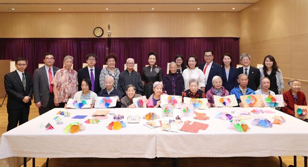 彭麗媛、梁唐青儀與多位長者一起制作立體卡。