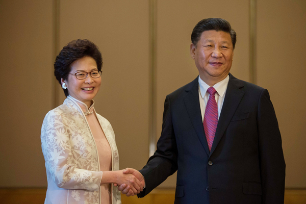 在與林鄭月娥會面期間,習近平首先祝賀她成為第5任行政長官,習近平說未來5年責任重大,使命光榮,相信她克儘職守、不會辜負中央和香港市民的期望,完成這份使命,為香港再创輝煌。