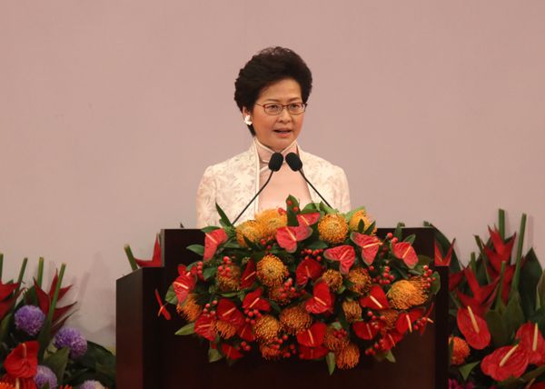 林鄭月娥宣誓就職后致辭。記者崔俊良攝