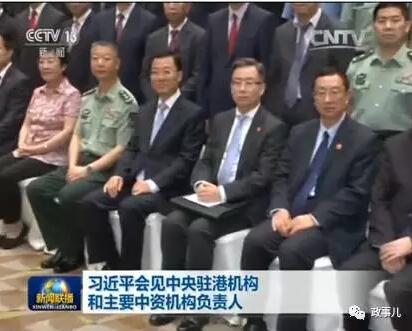 6月29日下午,習近平在梁振英陪同下,會見了香港特別行政區現任行政、立法、司法機構負責人。王滬寧、范長龍、栗戰書、王晨、楊潔篪、張慶黎等陪同。據央視新聞聯播顯示,王光亞、丁薛祥、張曉明也在現場。
