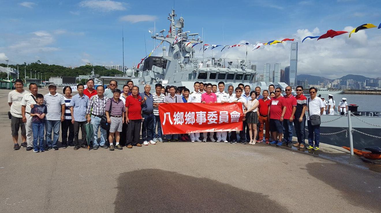 受駐港部隊邀請,6月24日下午3時,八鄉鄉委會主席鄧瑞民、副主席鄧志光帶領數十名村民代表到達昂船洲海軍基地,參觀中國海軍最新的056型導彈護衛艦(惠州艦)。當日,停泊於岸邊的護衛艦以懸挂滿旗的海軍最高禮儀歡迎八鄉村民,艦上指揮官們走下艦艇向村民們行軍禮并表示,歡迎各位父老鄉親參觀,而艦上信號兵則打出「歡迎」的旗語。全體村民登艦后,指揮官向村民介紹艦艏主炮、艦舷自動炮、前桅與烟囪之間反艦導彈等部分艦載武器,2013年7月1日在香港服役的056型導彈護衛艦用於近海防御,即將參加迎接航母訪港的惠州艦指揮官稱,該艦主要對海上來犯艦艇實施打擊時「拳頭夠硬」。鄉委會增選執委鄧強勝表示,「拳頭夠硬」,能保衛國家、保衛香港,市民就放心了。