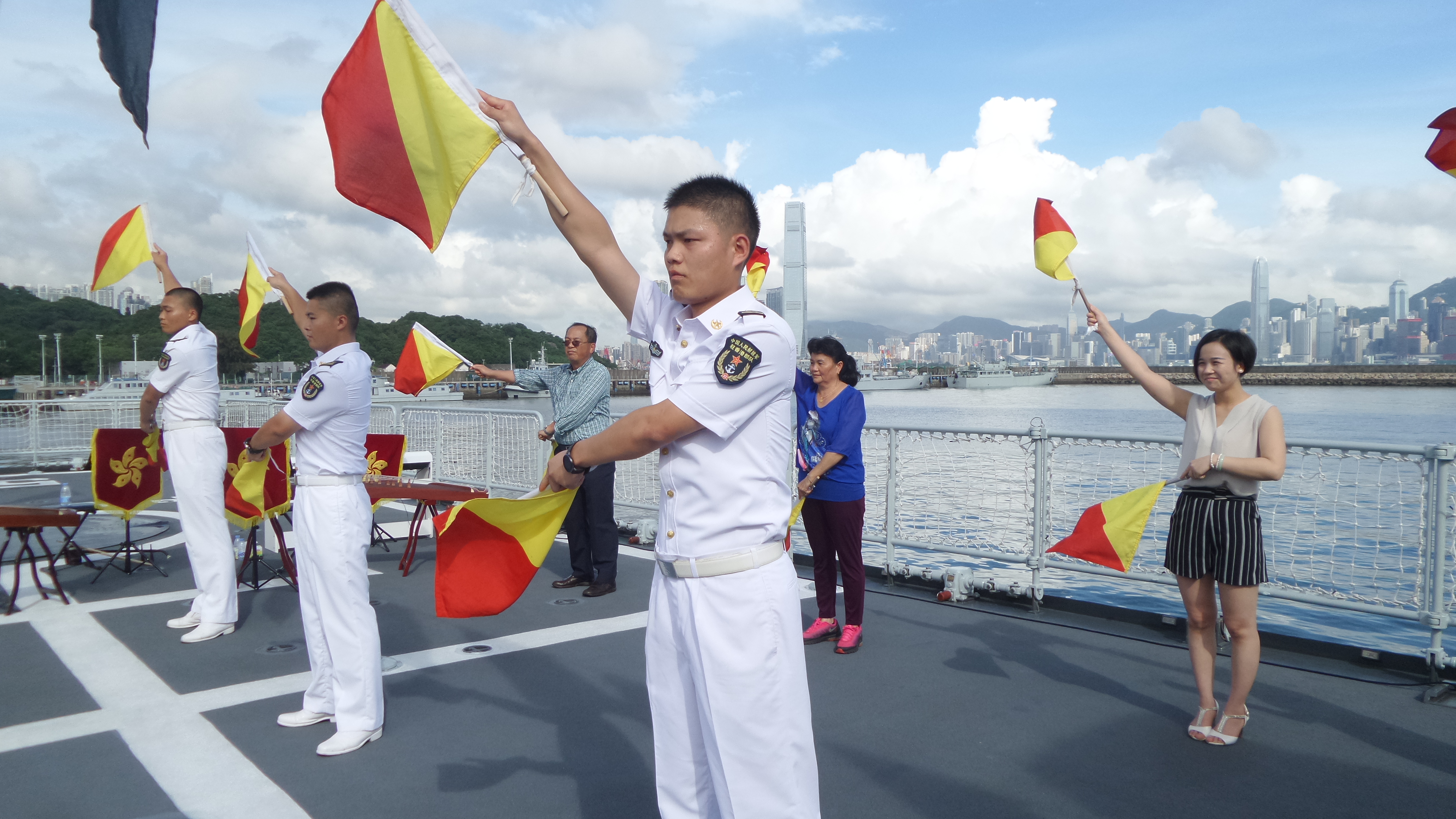 信號兵打出「歡迎」旗語