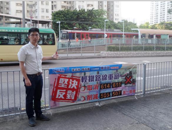 當區區議員葉文斌表示,取消輕鐵614,對兆麟、豐景、屯門泳池以及杯渡的街坊最受影響,現時無論車輛和班次都不足,暑假之后,學生返學時,每人背着書包,所占空間大,令車廂更加擁擠,所以,當區街坊堅決反對取消輕鐵614和615。如兩條輕鐵路線取消,勢迫爆輕鐵610,加上輕鐵610途經多個新樓盤,乘車人數超爆。屯門區議會主席梁健文表示,政府突然提出以取消及削減路線作為提升服務的理由根本是錯誤的構思,輕鐵被安排扮演輔助角色,但卻又是區內唯一主要交通工具,現時以政府角色,輕鐵很難有突破改變。他表示,明年是輕鐵服務30周年,30年來輕鐵作用有目共睹,希望國慶之時有更好的改善計劃。