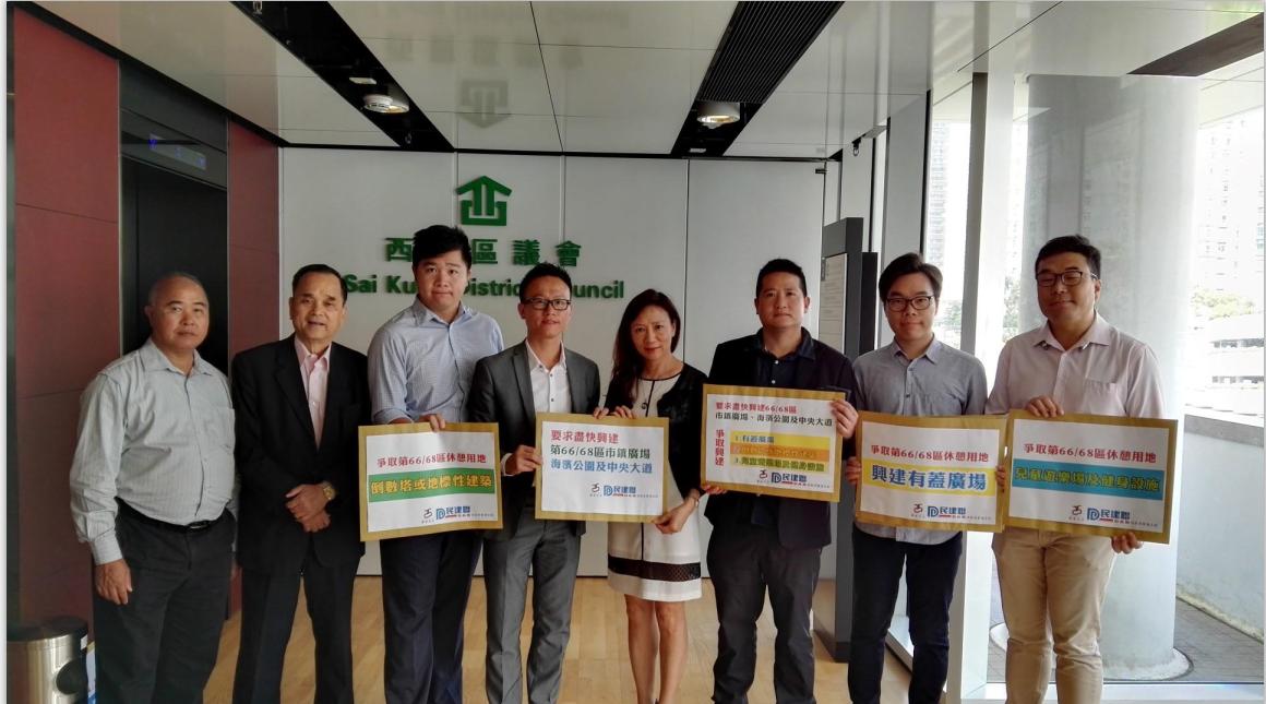民建聯西貢將軍澳支部到區會請願,要求盡快興建將軍澳第66及68區市鎮廣場、海濱公園及中央大道。