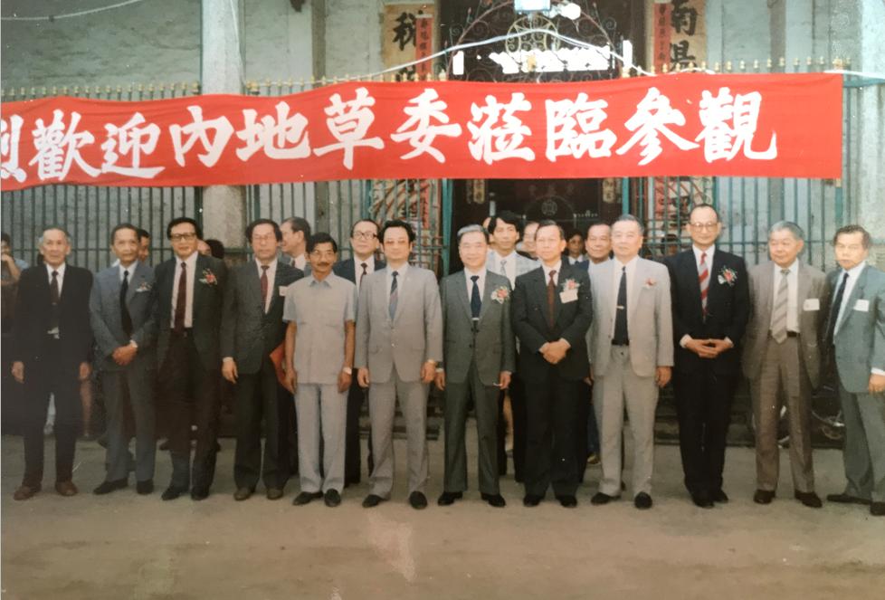 基本法起草期間,劉皇發(右五)接待以王漢斌(右六)為首的內地官員到新界拜訪,了解實際情況。