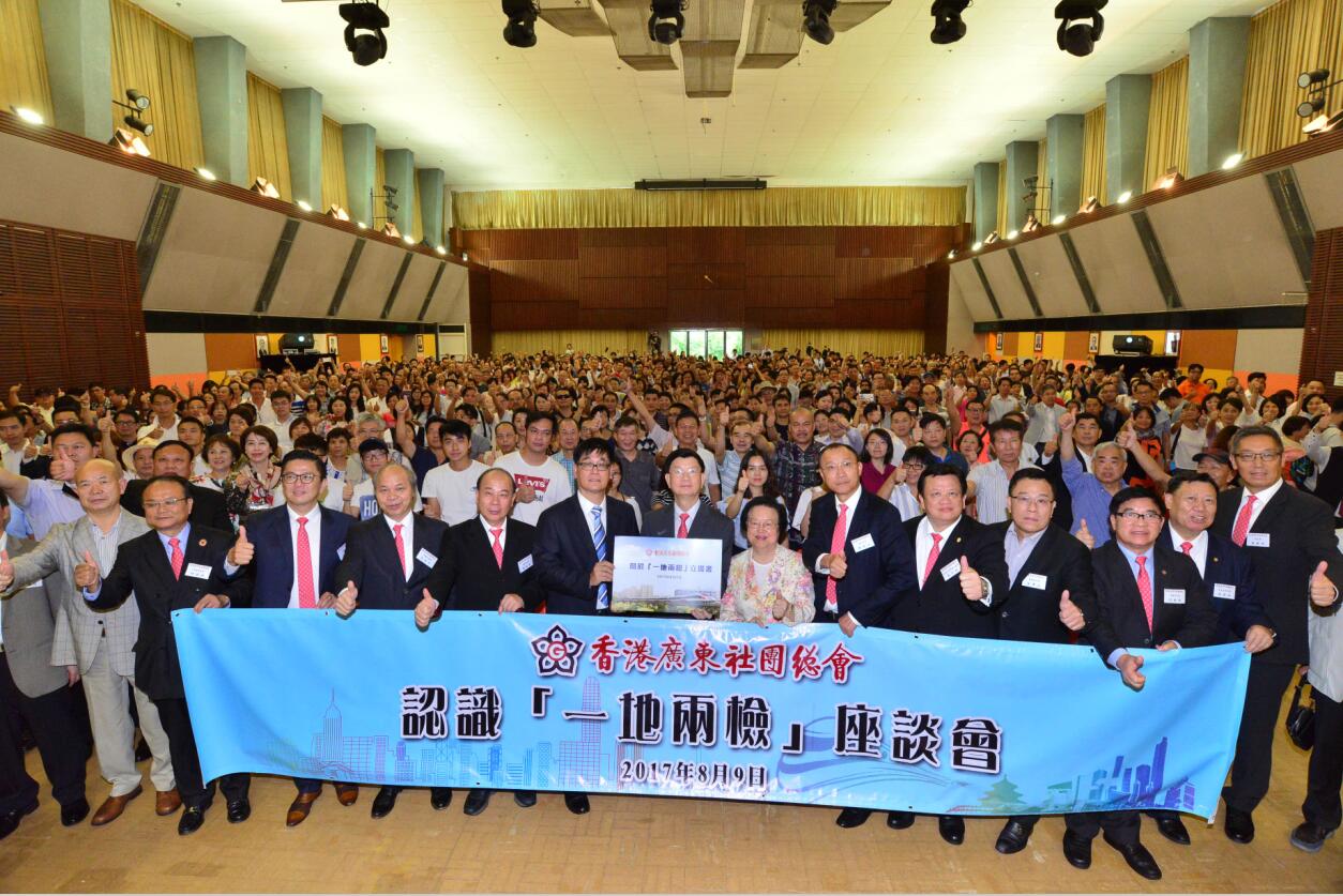 香港廣東社團總會昨天下午舉辦認識「一地兩檢」座談會,逾千人參加。