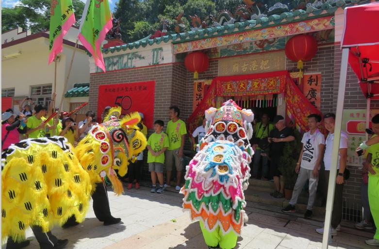 這種一年一度的熱鬧場面已經是第50周年,自1968年重建遭台風吹毀的把港古廟,當年出任村長8年的李志峰就成立洪聖寶誕值理會,并首演粵劇賀誕。據沙螺灣鄉公所的資料,把港古廟建於乾隆39年(1774年),當年是聽風水先生建議,在太露的灣口建廟,以鎮風雨,消除水淹之厄,該廟是守護港灣,因此供奉「把港大王」,廟便稱為「把港古廟」,而鄉民供奉的把港大王就是茅洲大王,即人稱的洪聖大王。洪聖爺是南海的海神,祂的傳說可追溯至隋朝。