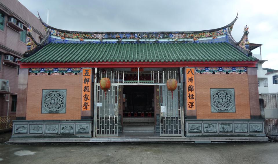 新建陶氏宗祠,為三進兩院的建築,其規模等同新界大家族祠堂,陶錫源帶記者參拜宗祠祀廳神台,所見中央最高處的神位刻上「晉始祖太尉長沙公諡桓士行府君神主」。他表示,陶氏族人尊奉士行府君為神主,士行乃東晉名將、大司馬陶侃公字號,其曾孫便是東晉文學家、田園詩人陶淵明(五柳先生),故陶氏宗祠又名「五柳堂」,祠門兩側有一副對聯「八州錦世澤,五柳振家聲」,意為以五柳之風振作家族的聲譽。陶錫源打開3本厚厚的「陶姓族譜」稱,父親陶福添是屯門陶氏開基一世祖文質第19代傳人,也是陶族耆老之一。其父於1946至1966年曾任村長,先後撰寫「新建宗祠陶氏流碑記」、「秋春分唱禮文」、「忠義堂簡史」及「屯門忠義堂建醮經過」。