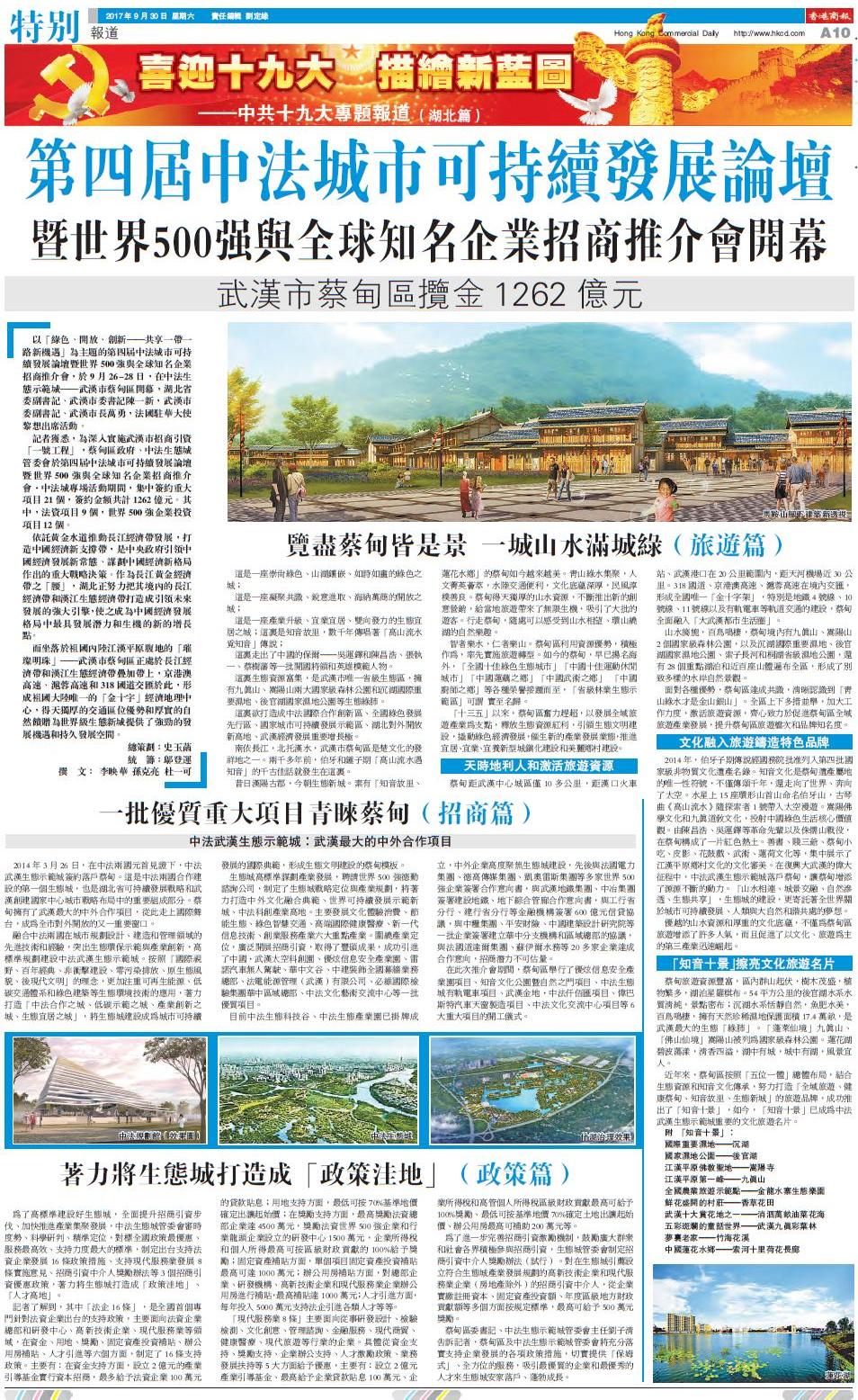 以「綠色、開放、創新--共享一帶一路新機遇」為主題的第四屆中法城市可持續發展論壇暨世界500強與全球知名企業招商推介會,於9月26-28日,在中法生態示範城——武漢市蔡甸區開幕,湖北省委副書記、武漢市委書記陳一新,武漢市委副書記、武漢市長萬勇,法國駐華大使黎想出席活動。