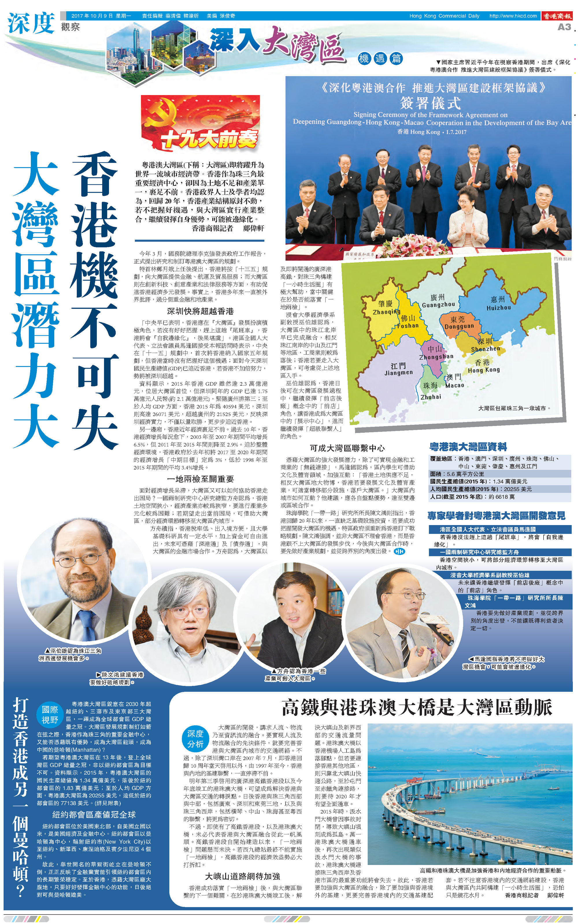 大灣區的開發,講求人流、物流乃至資訊流的融合。要實現人流及物流融合的先決條件,就要完善香港與大灣區內城市的交通網絡。不過,除了深圳灣口岸在2007年7月,即香港回歸10周年當天啟用以外,由1997年至今,香港與內地的基建聯繫,一直停滯不前。