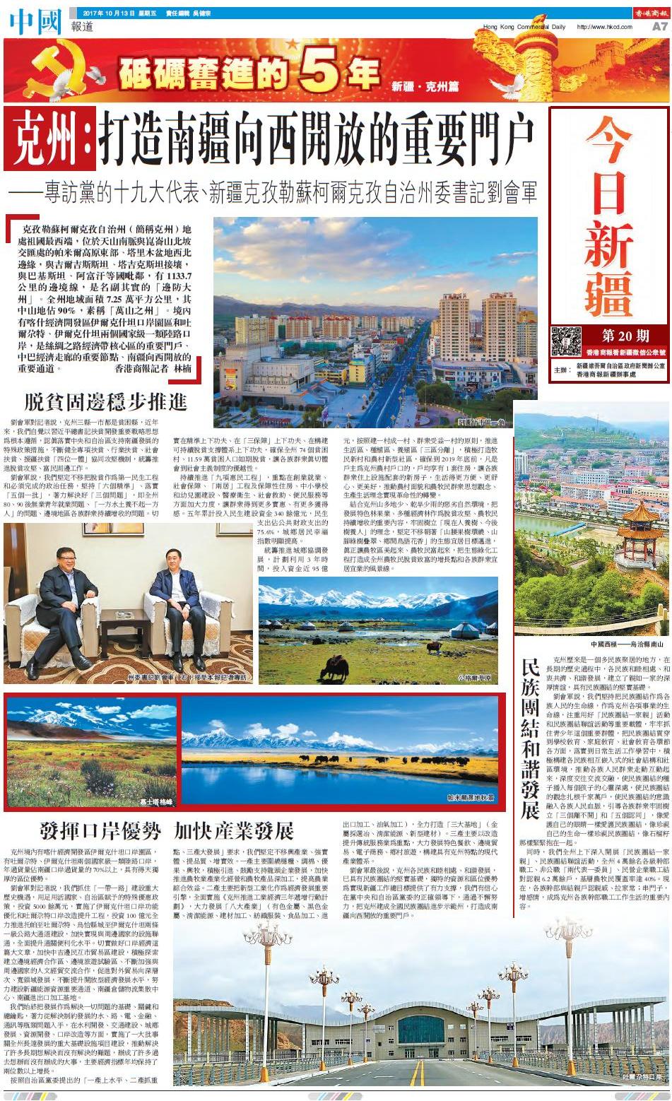 ——專訪黨的十九大代表、新疆克孜勒蘇柯爾克孜自治州委書記劉會軍