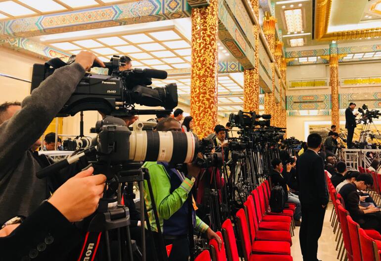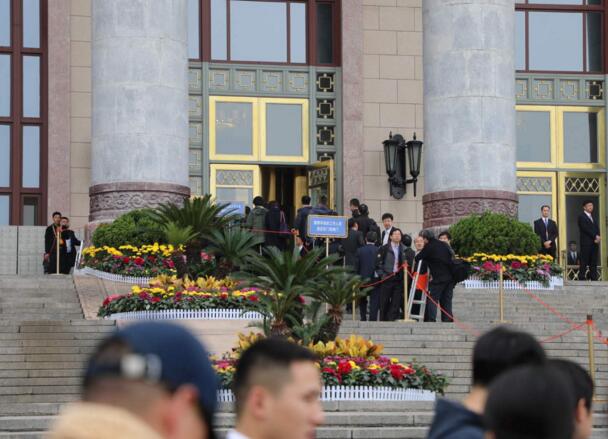 中國共產党第十九次全國代表大會新聞发言人定于2017年10月17日(星期二)下午4:30在人民大會堂三樓金色大廳舉行新聞发布會。下午不到二時,人民大會堂門口已有記者排隊等待進場。與此同時,大批代表從東門進入人民大會堂。