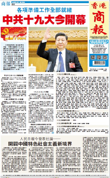 「歷史的畫卷,總是在砥礪前行中鋪展;時代的華章,總是在新的奮斗里書寫。」在中共十九大開幕之際,人民日報今天發表題為《開辟中國特色社會主義新境界》社論,熱烈祝賀中國共產黨第十九次全國代表大會開幕,并預祝大會圓滿成功。