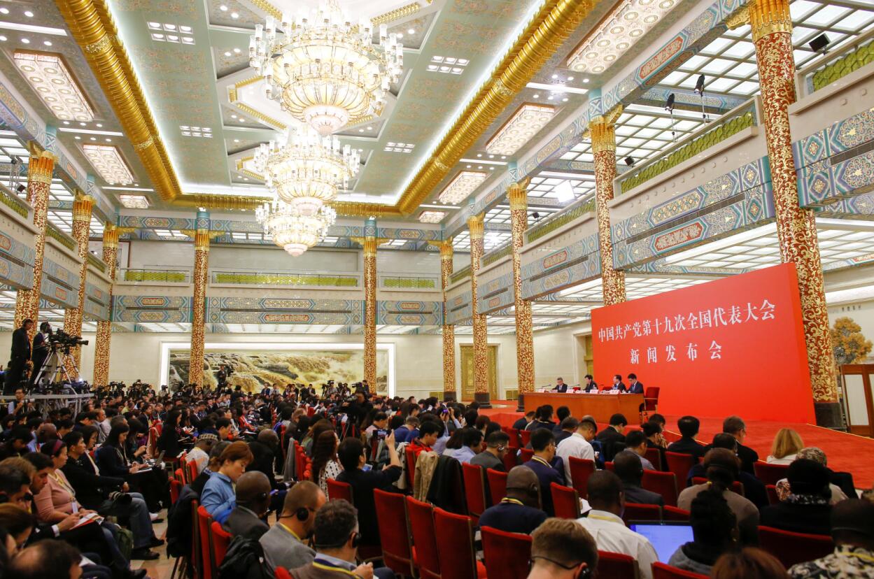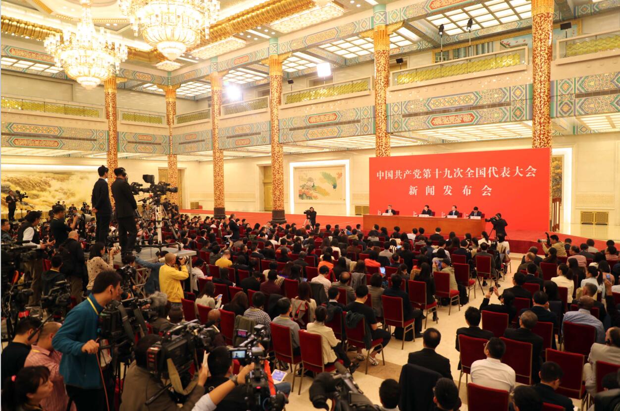 昨日下午,中共十九大新闻发布会在人民大会堂三楼金色大厅举行。中新社
