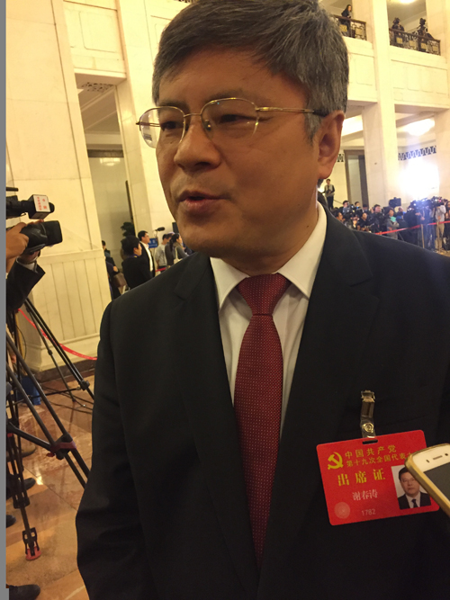 大家好,我叫謝春濤,是中央黨校的教授。大家可能知道,中央黨校是培訓黨的高中級幹部地方。我主要從事的是中國共產黨曆史和理論的教學研究工作。我是第一次參加黨代會。過去是學習研究黨代會的精神,這一次有機會參與全過程,非常高興。謝謝!