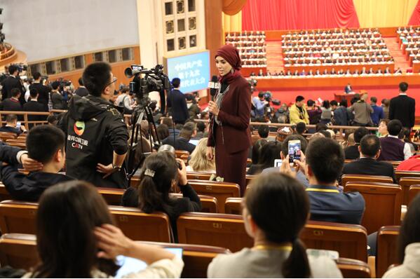 本記6點離開酒店,7點過來到大會堂東門,媒體隊伍已排起了長龍,進得大會堂門廊之后,經過安檢,入得大廳。今屆大廳新增一景北側特設「黨代表通道」,三四人一組,一字排開,接受媒體集體采訪。而想要睇見受訪黨代表的正面,又須有專門的請柬加持,否則只能看背影了,本記首天就獲得了這份加持,所以得以和受訪的黨代表面對面。