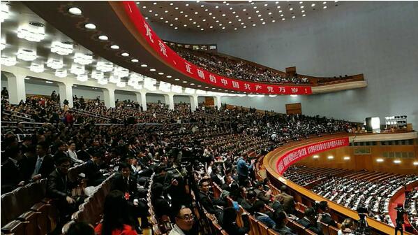 接下來,習近平總書記代表十八屆中央委員會向大會作了整整三句半鐘的報告。他全場站著發言,自始至終聲音宏亮、渾厚有力。期間除了一位最年長的代表102歲的焦若愚因身體原因中途被推離場外,其餘代表均坐足全場。報告論述全面頗具新意