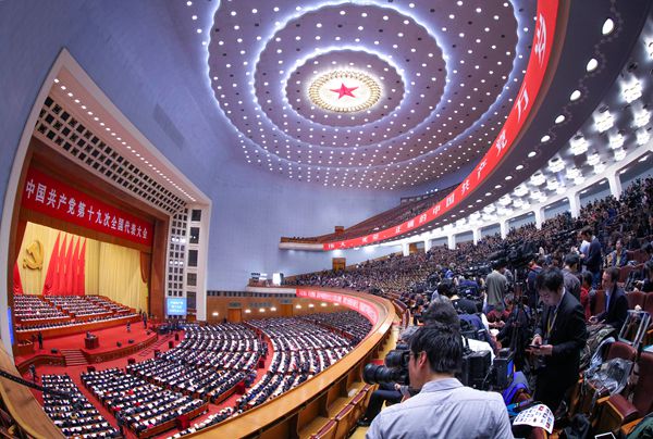 10月18日,中国共产党第十九次全国代表大会在北京人民大会堂开幕。习近平代表第十八届中央委员会向大会作了题为《决胜全面建成小康社会 夺取新时代中国特色社会主义伟大胜利》的报告。中新社发 盛佳鹏 摄