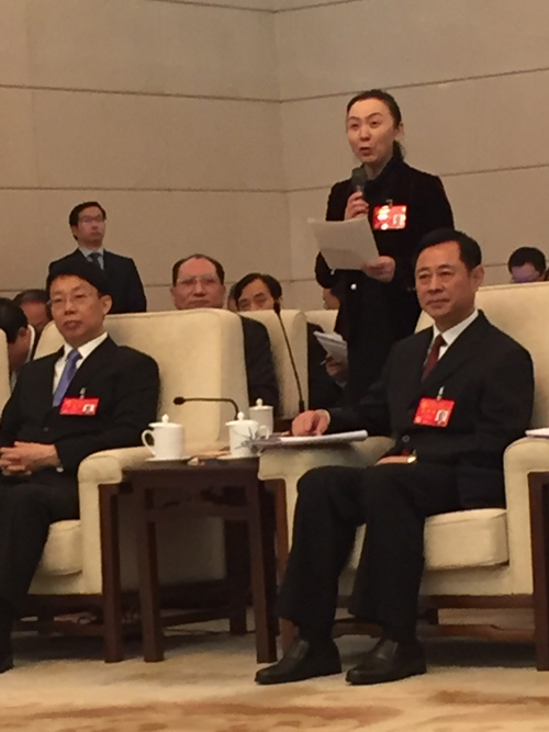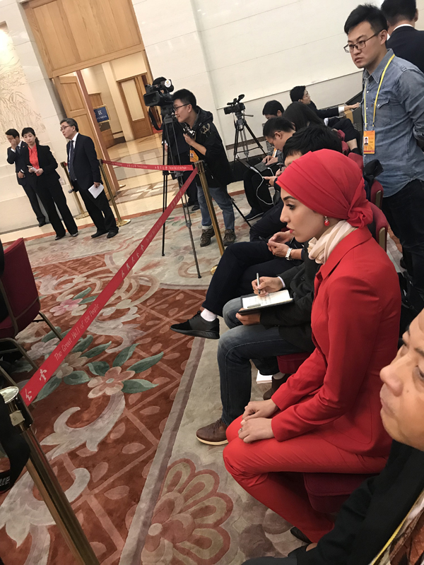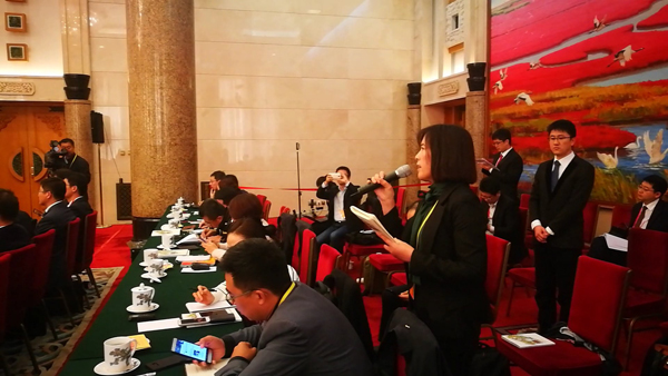 迪拜美女記者在河南團提問國企改革問題。