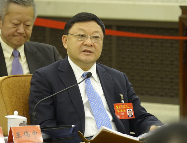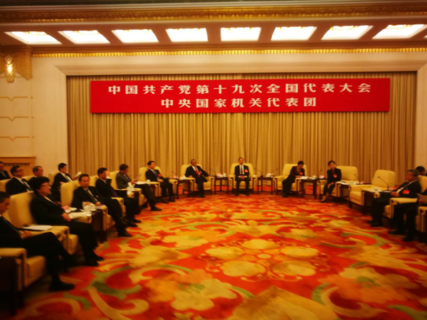 由186名成员组成的中央国家机关代表团在人民大会堂西大厅审议报告,中国外交部部长、党委副书记王毅,国家发展和改革委员会主任、党组书记何立峰,十九大代表、教育部部长、党组书记陈宝生,民政部部长、党组书记黄树贤先后发言。