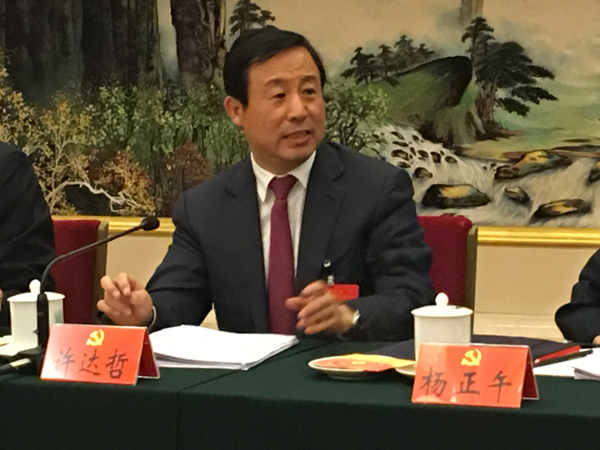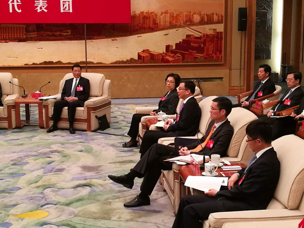 19日下午,山東代表團討論,山東省省委書記劉家義,省委副書記、省長龔正發言。(特派记者 张丽娟摄)
