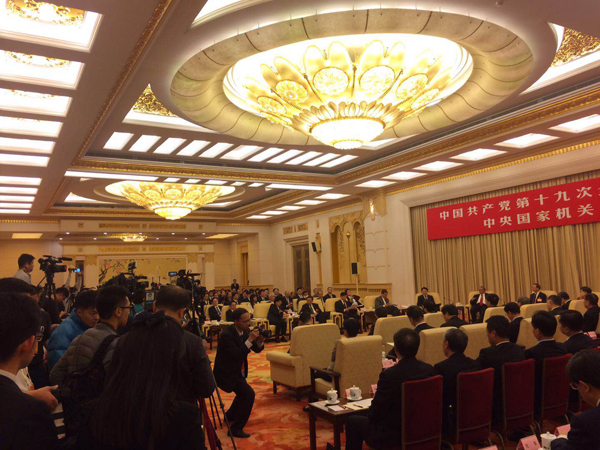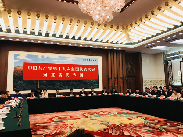 19日下午,十九大河北代表團開放討論,已有唐山、石家莊、廊坊三市市委書記先後發言,京津冀協同發展、雄安新區及北京城市副中心建設成為了代表發言的高頻熱點詞。(特派記者 敖雷、胡薇攝)