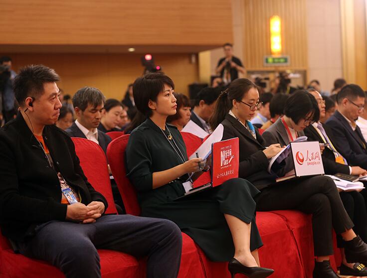 图为中央电视台记者提问。新华网 郝广鹏摄
