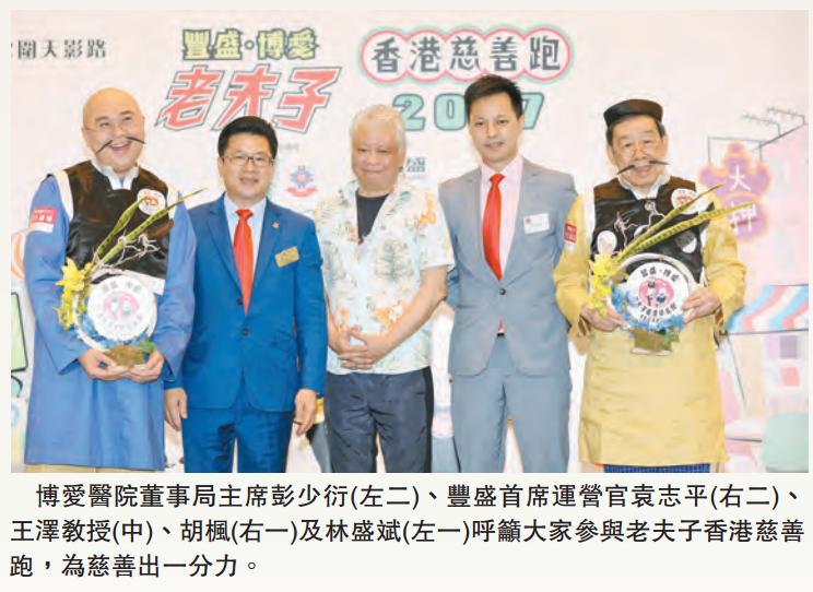 活動由豐盛控股有限公司冠名贊助,名為「豐盛·博愛老夫子香港慈善跑2017」,於11月12日(星期日)假天水圍天影路舉行。路線由天水圍天秀路出發,途經天影路至洪志路折返,以天秀路為終點,全程約10公里。是次活動設有6000個參加名額,市民可選擇參與「個人組」或組隊參加「企業團體組」,以挑戰10公里或3公里的比賽路線;賽事沿路將設有樂隊為跑手打氣,展現香港人守望相助的精神。
