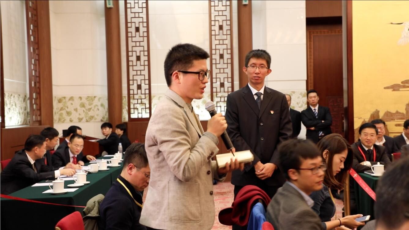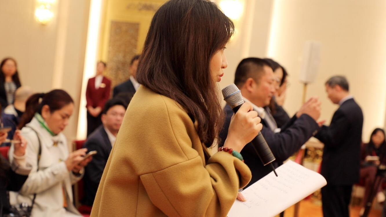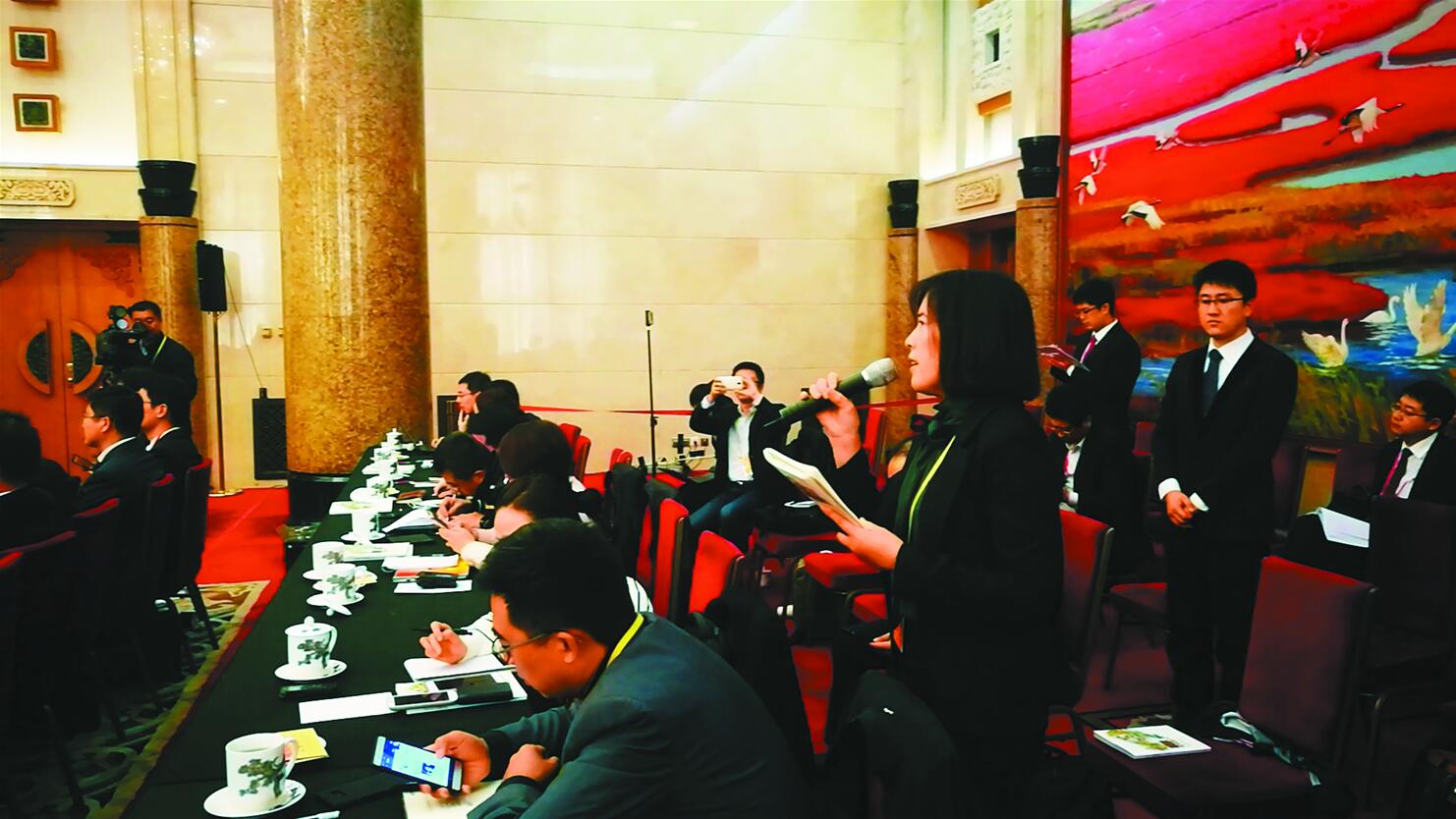 本报记者敖雷在河北团开放日上抢得提问机会。