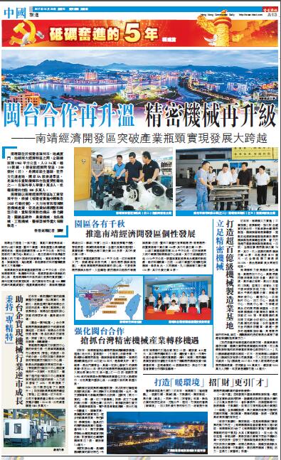 【香港商報網訊】南靖縣位於福建省漳州市,地處廈門、汕頭兩大經濟特區之間,全縣總面積1962平方公里,人口36萬,轄11個鎮、1個省級經濟開發區,200個村(居),是國家級生態縣、世界文化遺產地、國家5A級旅游景區。是漳州市重點僑鄉和台胞重要祖籍地之一,有海外華人華僑3萬多人,祖籍南靖的台胞100多萬人。南靖縣以南靖經濟開發區為工業發展平台,根據《福建省實施中國制造2025行動計劃》,大力培育和發展精密機械產業,促進產業結構調整和轉型升級,重點發展數控機床、綠色鑄造、關鍵基礎件、農業機械、食品機械、工程機械、醫療器械等重大裝備制造。香港商報記者葉晴