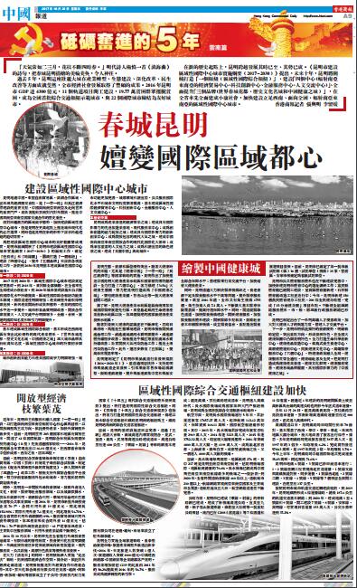 過去5年,昆明這座壯麗大城在產業轉型、生態建設、深化改革、民生改善等方面成就斐然,全市經濟社會發展取得了豐碩的成果。2016年昆明市GDP達4300億元,11個軌道項目開工建設,19.77萬貧困群眾擺脫貧困,成為全國首批綜合交通樞紐示範城市,與22個國際城市締結為友好城市。