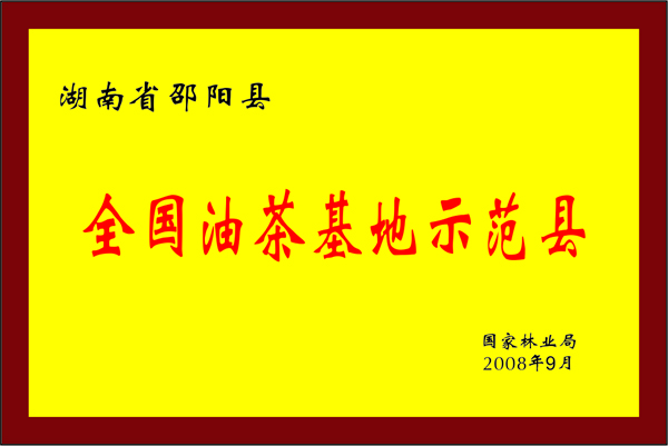 得益於邵陽縣油茶產業的有效推進,近年來,國家、省、市有關部門充分肯定了邵陽縣油茶的產業發展模式,先后授予邵陽縣「中國茶油之都」「中國油茶之鄉」等榮譽稱號,「邵陽茶油」先后被國家工商總局、國家質量監督檢驗檢疫總局註冊認證為國家地理標誌證明商標,國家地理標誌產品保護,國家林業局正式批覆同意邵陽縣建設「國家油茶標準化示範縣」,中國林業產業聯合會木本油料分會評定邵陽縣為首批「全國木本油料特色區域示範縣」,邵陽茶油光芒熠熠。