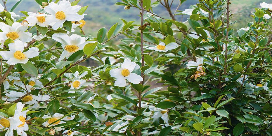 争相斗艳的油茶花海。