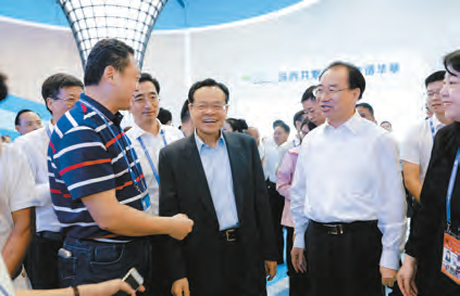 廣西壯族自治區主席陳武與第14屆中國—東盟博覽會粵桂合作特別試驗區參展企業交流。