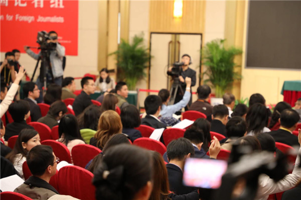十九大新聞中心今日上午召開第三次記者招待會,向外界介紹黨的統一戰線的工作和對外交往情況。招待會由十九大大會新聞發言人、國務院新聞辦公室副主任郭衛民主持,中共中央統戰部常務副部長張裔炯、副部長冉萬祥,中共中央對外聯絡部副部長郭業洲出席,並回答記者提問。香港商报特派记者朱辉豪 刘深