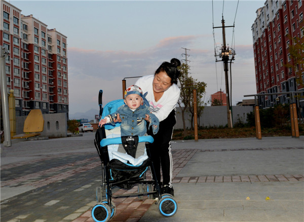 10月20日,在內蒙古包頭市北梁新區,一名女子帶著嬰兒在小區玩耍。新華社