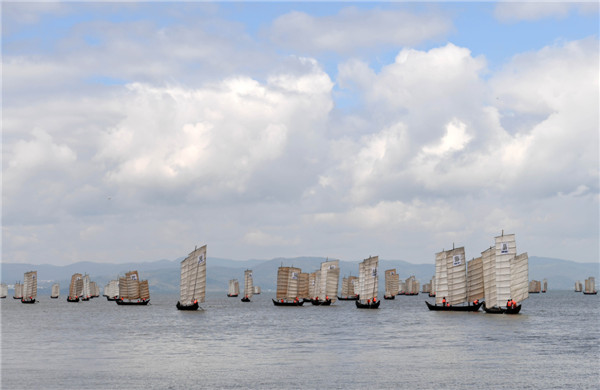 2017年9月30日,雲南省昆明市滇池迎來開湖季,漁民劃著帆船在滇池上准備捕魚。長期實行的年度封湖禁漁和開湖捕撈交替的滇池漁業管理模式,既保證漁業生態功能正常發揮、有效削減滇池內源汙染,又增加了沿湖村民收入。新華社