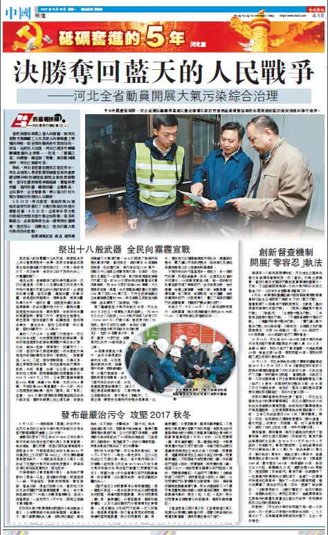 對此,河北省委書記趙克志堅定表示,河北必須深入學習貫徹習總書記系列重要講話精神和治國理政新理念新思想新戰略,堅守生態和發展兩條底線,實施科學治霾、協同治霾、鐵腕治霾,全黨動員,全民動手,全社會參與,齊心協力打好大氣污染綜合治理的人民戰爭。