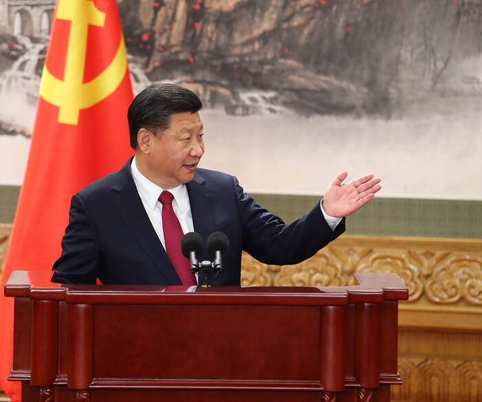 10月25日上午,在中共十九届一中全会上当选的中共中央总书记习近平和中央政治局常委李克强、栗战书、汪洋、王沪宁、赵乐际、韩正在北京人民大会堂同采访十九大的中外记者见面。習近平總書記發表重要講話。
