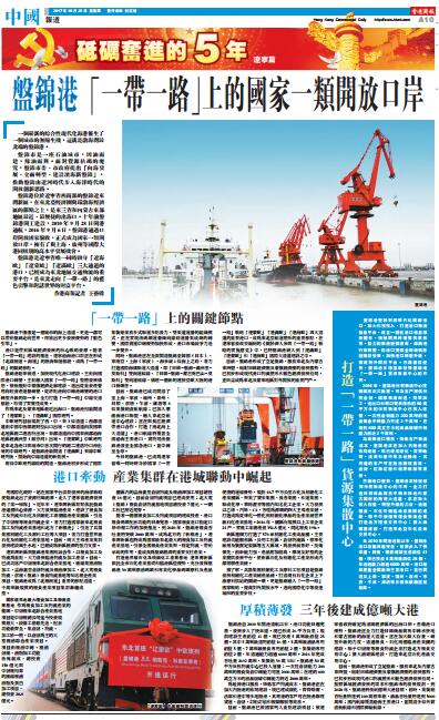 盤錦港是遼寧省唯一同時躋身「遼海歐」「遼蒙歐」「遼滿歐」三大通道的港口,已經成為東北地區交通物流的重要平台,是東北走向「一帶一路」的藍色引擎和對話世界的財富平台。香港商報記者 王藝橋