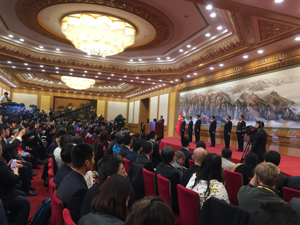 新當選常委入場,與中外媒體見面。
