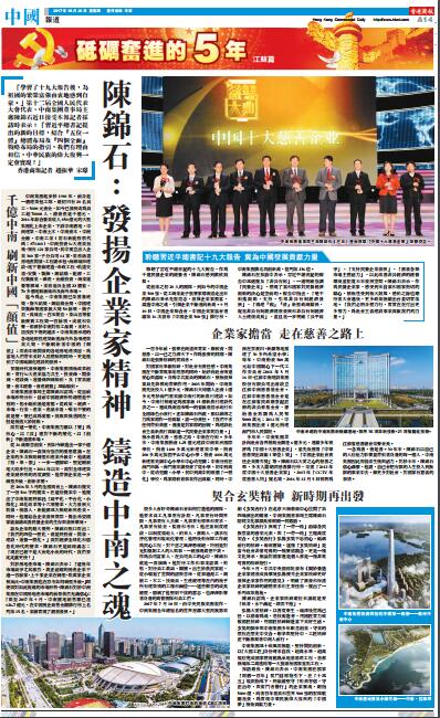 「學習了十九大報告后,為祖國的繁榮富強由衷地感到自豪。」第十二屆全國人民代表大會代表、中南集團董事局主席陳錦石近日接受本報記者采訪時表示:「習近平總書記提出的新的目標,結合『五位一體』總體布局及『四個全面』戰略布局的指引,我們有理由相信,中華民族的偉大復興一定會實現!」香港商報記者 趙振華 宋璟