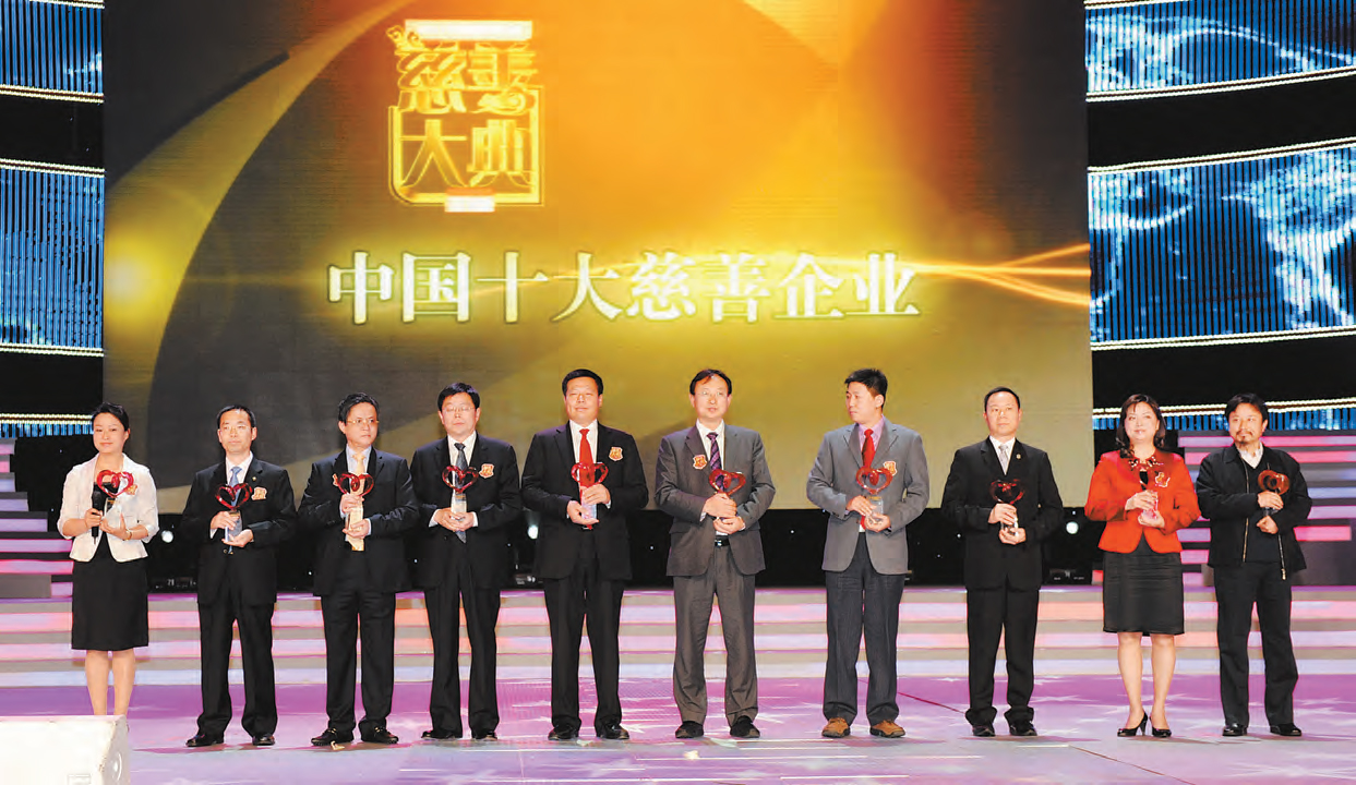 中南集團董事局主席陳錦石(左五)登台領取「中國十大慈善企業」榮譽獎杯。