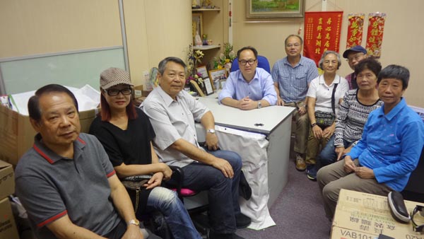 謝建星(右五)、脫曾立(左三)向區議員李月民(中)表達訴求。