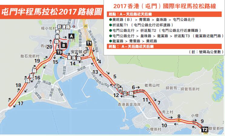 馬拉松賽的起點及終點均在屯門天后路近天后廟。