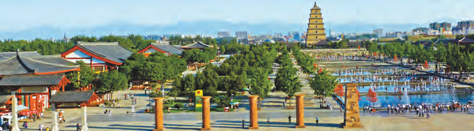 歷史現代交相輝映的西安大雁塔北廣場。