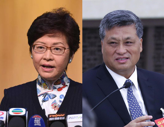 行政長官林鄭月娥(左圖)與廣東省省長馬興瑞(右圖)今午在禮賓府簽署《內地與香港特別行政區關於在廣深港高鐵西九龍站設立口岸實施「一地兩檢」的合作安排》。資料圖片