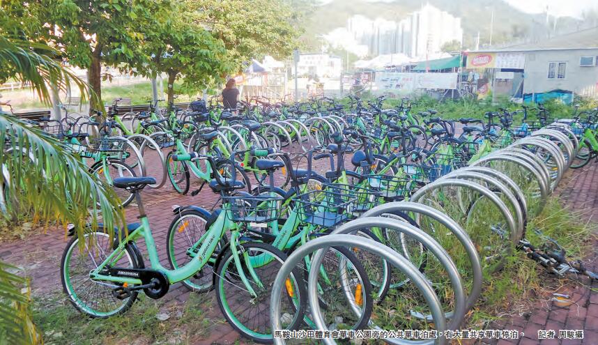 在馬鞍山「沙田體育會單車公園」單車泊位所見,泊位處除了擺放數輛私人單車外,大部分是共享單車。一位黎姓市民推一輛黃色共享單車離開時告訴記者,她踩單車2年多,現時試以共享單車代步,如果在2小時內就租用共享單車,主要是於街市買菜、商店購物、至巴士站和港鐵車站乘車之用。她指其性能當然與非智能單車有分別,踩共享單車上斜坡時感覺費力些、車速亦較慢。如果預計2小時以上的戶外活動,她仍會選用非智能單車,其有變速功能更好。她表示,注意到街邊有違例泊車情況,她不會違例泊車,也希望單車使用者勿亂泊單車阻礙他人使用道路。