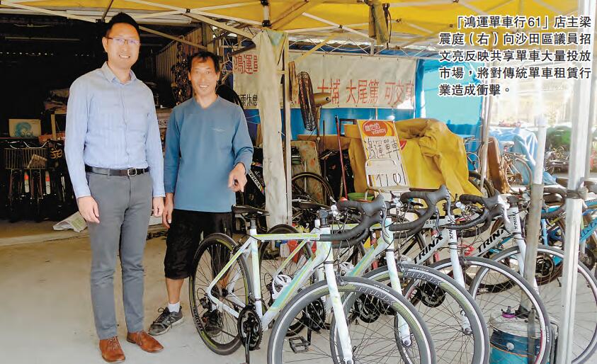 該公園內另一個車舖的林姓店主稱,兩類單車生意不會重疊,共享單車以代步為主,而傳統單車則為休閒交通工具,而傳統單車棚會對每輛用過的租賃單車經常檢修。然而,他質疑共享單車的市場投放量,整個沙田有近30間車舖、近萬輛單車,共享單車經營者於短時間海量投放單車對傳統單車從業者造成很大壓力,而香港道路狹窄及泊車位不足,未能與共享單車投放量成正比,現時周六日單車徑已開始塞車。另外,共享單車取用、歸還自由度太大,部分共享單車使用者通街亂泊車,有甚者更於行車彎道處泊單車。